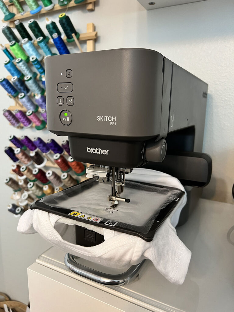 The Brother Skitch is unlike any other embroidery machine that I own. I doesn’t even look like an embroidery machine π€£. The totally new design changes how designs are sent to the machine and although it only has a 4×4 max embroidery field, it has some great features. First it has a free arm so stitching small baby onesies, clothing, and pockets is so much easier. Plus it comes with a magnetic hoop and cuts jump stitches.
