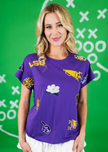For this tutorial, I’ll be creating a football-themed shirt covered in a variety of patches—similar to the inspiration photo below from Obsessions Boutique—but you can customize yours to fit any theme you like! This project is 4×4 hoop friendly and beginner-approved, making it a perfect way to try out patch-making for the first time. I will be using my Brother Skitch for this tutorial, but it can be made on any machine. By the end, you’ll be ready to create endless personalized patches for game day, holidays, or just for fun!